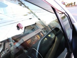 今日も、夕刻散歩に出かけるとき、車に乗ろうとしたら、運転席側の窓に止まっていた(写真)。ドアを開けて乗り込んでも逃げないので、そのまま走って総合公園に向かったら途中でいなくなっていた。〔仕事と歩数〕名古屋川柳社誌上大会の選考&発送。6,015歩。
