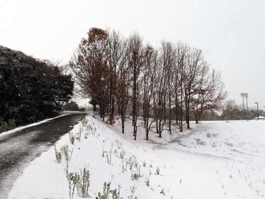 ・本日、終日雪模様。だが、デスクワークばかりでも気が晴れず運動不足になるので、昼前散歩の代わりにショッピングセンターをぶらぶらして昼食用の食パンやあれこれ買い物。夕刻散歩では傘を差して総合公園の遊歩道を歩く。写真1は子ども広場の雪景色。 2と3は、林と枝模様。積雪はせいぜい5センチまで? だが今夜から明日にかけて豪雪という予報。皆さんくれぐれもご注意ください。〔仕事と歩数〕愛染帖PCインプット。5,185歩。