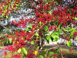 ・本日はクリスマス・イブ、と言っても特に変わったことをする訳でもなく、昼前散歩で見付けた「赤い色」を撮ってきたぐらいなもの。写真1、総合公園外周の農道で目立っていたサザンカ。2、総合公園内の鮮やかに色付いたクロガネモチ。3、公園内の柿。まだいっぱい残っていて本日も1つ頂戴したが、渋は完全に抜けていて冷たくて旨かった。〔仕事と歩数〕大山滝句座会報作成&発送。6,912歩。