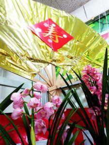 ・こちら鳥取は朝から小雨。昼前散歩にも出掛けず、年末から続けているアレコレの整理やデスクワークなどをのんびり片付けています。写真2は、昨日買い物に立ち寄ったホームセンターの入り口すぐのところ、花売り場に飾ってあった【寿】をチョイと拝借。