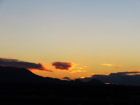 ・本日、朝の間は小雨だったが、息子たちが出発する前には晴れて青空が出てきた。夕刻散歩でも夕映えが見えた(写真1)。〔仕事と歩数〕センマガ名句鑑賞。5,845歩。