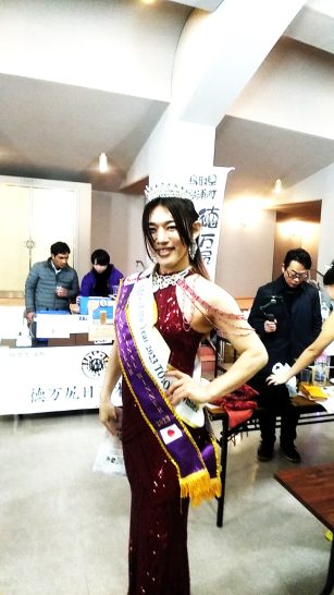 私たちの直ぐ近くのテーブルに王冠を乗せて着飾ったご婦人がおられたので、写真を撮らせていただいた(写真下)。ミセス島根・鳥取代表で世界大会?に出場するための募金をしている?とかというパンフも頂戴したが、イマイチよくわからなない。そのようなこともあって愉快に談笑、アバウト1時間30分。お礼を言ってバイバイしたのが午後7時30分。懐かしい米子の街をぶらぶら歩いて米子駅到着は午後8時前。8時11分発の鳥取行きに乗車して帰宅は9時過ぎ。皆さん楽しい時間をサンキューベリーマッチでした!