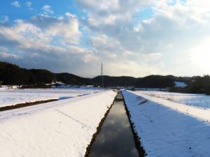 ・本日快晴、最高気温も10℃まで上がった模様。昼前散歩の総合公園でも爽やかな青空(写真1)。しかし、まだ田圃では一面の雪が溶けていない。夕刻散歩にて(写真2)。〔仕事&歩数〕センマガ名句鑑賞。6,079歩。