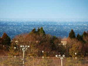 ・夕刻散歩では☀も出てきたが、風はまだきつかったので、風の当たらない総合公園の遊歩道を歩いて目標の5,000歩達成(写真1)。強風で枝やら葉っぱが散らかっていた。2、野球場外野の遊歩道から日本海を望遠でキャッチ。強風で白波が立っていた。 〔仕事&歩数〕到着したばかりの「愛染帖」選考。5,388歩。
