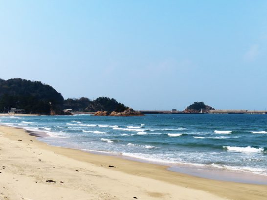 こんばんは~、今日の浦富海岸は、写真のように白波が立っていました。爽やかに晴れていましたが、浜辺には誰もいませんでした。