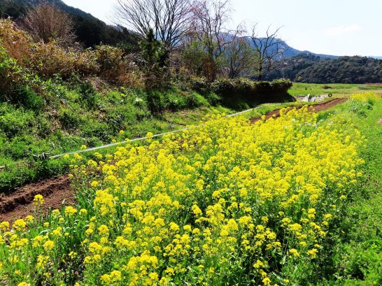 ・本日、第1日曜日にて川柳塔鹿野みか月川柳会例会日。ブログネタとして鹿野城址公園の桜を撮りたかったので、昼前散歩と昼食を早めに済ませて12時前に出発。城址公園には12時40分頃に到着。ところが車がいっぱいで、狭い道が一方通行になっていてノロノロ。ようやく駐車場に着いたがここもいっぱい。無理に入っても出るのに難儀するだろうと思って、撮影ポイントに停めて車の窓からパチリ(写真1)。ちょうど外国の別嬪さんが桜を背景に自撮りしているのが右に収まった。写真2は城址公園からの帰路に目を引いた見事な菜の花。