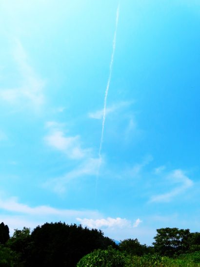 ・本日、全国的に暑くなった模様。こちら鳥取も最高気温31℃に達したようで、今シーズン初めて半袖を着る。昼前散歩でも下着のシャツが暑かったので木陰で脱いで爽やか。写真1、定点観測の飼料用トウモロコシ。もう1メートルほどになっている。2、青空に少しの雲と飛行機雲。〔仕事&歩数〕しんぶん赤旗「読者の文芸」選考。6,194歩。
