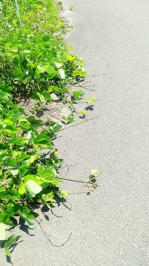 ・本日も快晴で最高気温は30℃超。写真1は昼前散歩にて。総合公園内のアジサイ。「早く梅雨の雨がほしいよ~~~!」と言っていた。2、道路脇の繁みからアスファルト路面にまで伸びてきた葛の蔓。先端は車に轢かれて潰されているが、負けずに伸びている。〔仕事&歩数〕交通安全川柳コンテスト選評。トタン屋根の錆止め塗装。6,637歩。