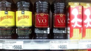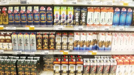 ・本日、朝から激しい雷雨。最高気温も27℃までしか上がらず、久しぶりにエアコンなしで過ごせた。その点は良かったが、断続的に雨が激しく、昼前散歩はパスしてマーケットへ。写真1は、焼酎売場にて。綺麗に並んでいたのでパチリ。私が贔屓の黒霧島は左下。また、このコーナーの左にでっかいボトルが並んでいたのでビックリ(2)。何と4ℓ入りのウィスキー。こんな大きな瓶入り、誰が買うのだろう?