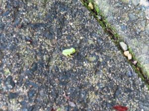 ・本日、最高気温は33℃ぐらいだったが、昼前散歩も夕刻散歩も蒸し暑く、濡らしたタオルを首に巻いて凌いだ。写真1、総合公園の遊歩道にて。できるだけ木陰を選んで歩いた。2、足もとをピョコンと跳んだアオガエル🐸。とても小さくて「これで生き抜けるのか?」と心配になるぐらい。〔仕事&歩数〕愛染帖選考&PCインプット。7,655歩。