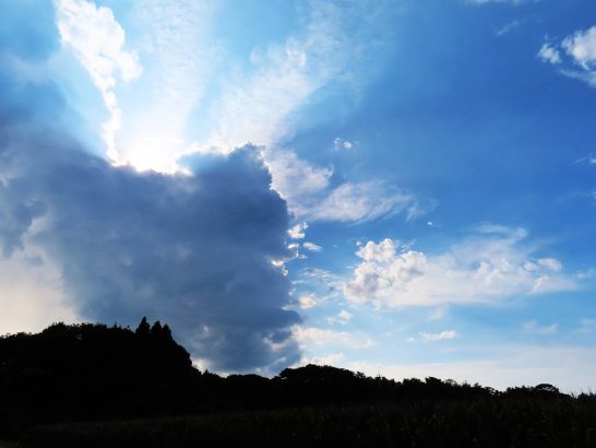 本日、朝から雷がゴロゴロ鳴った後から大粒の雨がザーザー。そして、直ぐ青空が広がって。という状況が何度か。夕刻散歩に出た時も、駐車場に着いたとたんにゴロゴロ&ザーザー。しばらく車で待機して、収まってから歩き出したが、西空に不気味な黒雲(写真)。で、早目にUターン。しかし、短時間ではあったが雨のおかげで少し涼しくなった。〔仕事&歩数〕大山滝句座会報作成&発送段取り。6,353歩。