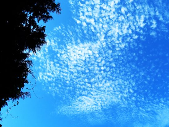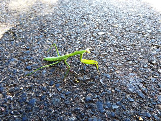 ・このようなことで、昼前散歩は出来ず。夕刻散歩で頑張ってようやくノルマの5,000歩オーバー。写真1は夕刻散歩にて。細かい鱗雲のような雲。2,カマキリが車道に出て身構えていたので、手で掬って草むらへ投げてやった。〔仕事&歩数〕午後から大山滝句座前号再見。5,411歩。
