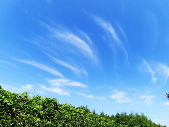 写真、昼前散歩にて。イルカがジャンプしているような面白い雲。本日の最高気温34℃? 蒸し暑くて散歩では濡れタオルを首に巻いて凌いだ。〔仕事&歩数〕川柳塔社「愛染帖」選考。6,938歩。