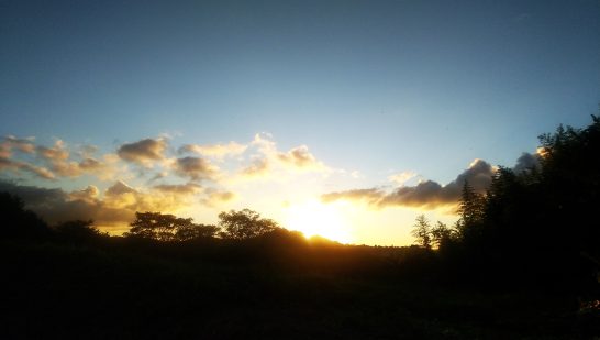 ・終了後。11月3日(日)の鳥取県大会についての打ち合わせ。アバウト20分。メインは前日の2日(土)の午後1時から現場に集合して、机の移動や受付の準備をすること。帰宅して雑用を片付けているうちに5時になったので夕刻散歩。遅く出たおかげで綺麗な夕映えが見えた(写真上)〔仕事&歩数〕打吹向け作句&出席。6,795歩。