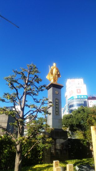はい、岐阜は初めての私にはホテルの位置を確認する「目印」としては便利で有り難かったのですが…。銅像としては高い所にありすぎのような感じですね。まあ、「庶民を見降ろしている」というコンセプトでしょうか。3メートルもあるのですか?台座が2メートルぐらいなら迫力あるでしょうね。