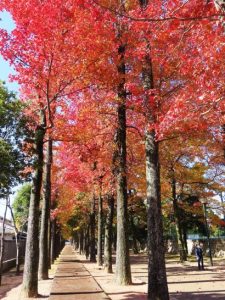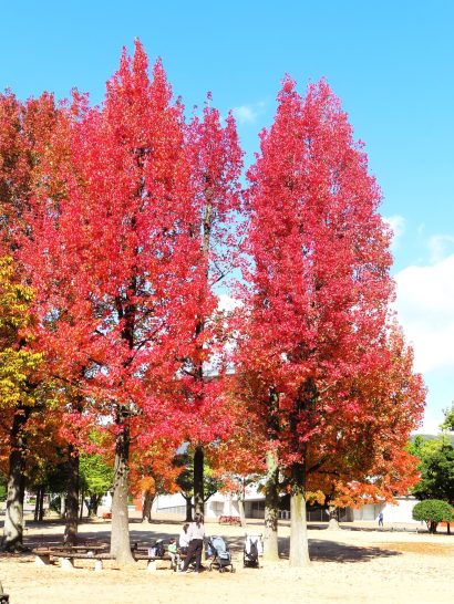 ・本日、第3木曜日にて山陽カルチャー例会日。いつものようにたっぷり余裕を持って9時30分に出発。特に渋滞もなく、いつものコースを走って、吉備SAにて昼食のサンドイッチと野菜ジュースと喉飴をゲット。岡山総合グランドにて、昼食と見事な紅葉を撮影(写真1~3)。爽やかな秋晴れの下、ハイキングだろうか、元気な子どもたち(2)。