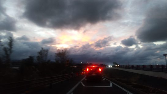 ・終了は3時過ぎ。往路と同じ道を走って、帰着は5時20分。写真1、初めて走った播磨自動車道。ガラ空きで帰りには120キロで飛ばせた。写真2、帰路5時過ぎ、日暮れ間近の山陰道。昨日のブログで山陰と山陽の天候の違いを書いたが、今日の天候がまさしくその通りで、往路の中国山脈から北側はずっと小雨で、赤穂市内に入ると青空だった。また帰路も、山陽側は好天のままだったが、岡山との県境を越えて鳥取に入ると小雨だった。 〔仕事&歩数〕赤穂大会出席。2,577歩(散歩せず。車から館内の移動のみ)。