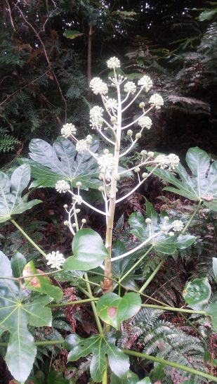 ・本日、朝方は雲が多かったが(写真1)、昼前頃から爽やかな快晴になって、最高気温も15℃ほど。昨夕から家内が、入院している京都の姉のお見舞いと留守宅に残っている雑用あれこれの片付け。そのために今日と明日は店番。昼間の散歩はできないので、朝8時から頑張って歩いた次第。総合公園の遊歩道の脇に、去年も撮った八手の花(写真2)。〔仕事&歩数〕毎日新聞山陰柳壇の「年間賞」選考と選評。6,799歩。