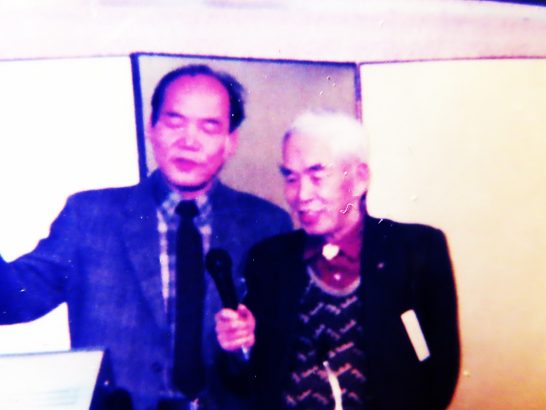 ・本日、調べることがあって、アルバムを繰っていたら、懐かしい写真が出てきた(写真2)。ご紹介するまでもないが、私の右でカラオケのマイクを持っておられるのは東野大八先生(1914~2001)(私より28歳上)。写真にはメモがないので、いつ?何処で?ということが不明。先生が亡くなられたのは23年前の2001年。亡くなられる10年ほど前のこととすれば、1991年で先生が77歳、私が49歳の頃。写真はピンボケで解り難いが、まあまあその前後であろうか。
