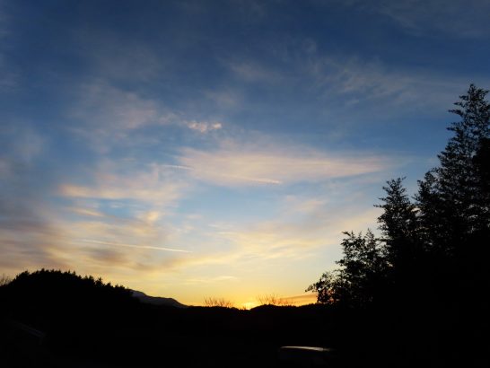 写真、本日の夕刻散歩での夕映え。、昨日頂戴した花。花瓶2つを使って家内が活けたが、まだ余っていたので隣家の奥さまに進呈して喜んで頂いたとのこと。〔仕事&歩数〕愛染帖選考・PCインプット。7,355歩。