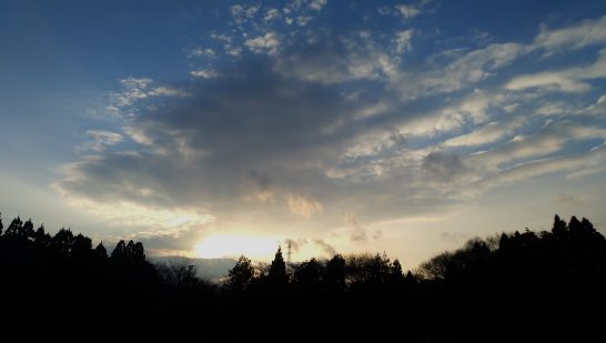 【7日のブログは休ませていただきます】7日は川柳塔社1月句会のため大阪へ。ホテル・アウィーナ泊。8日の昼から勤務時代の友人との新年会で宝塚へ。夜に帰宅してから2日間の行状をアップ致します。(写真下、本日夕刻散歩での西空)