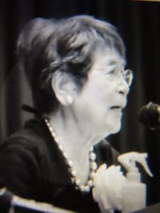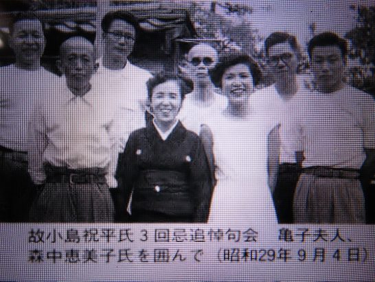 ・写真1、川柳塔誌電子化事業により電子化された小西雄々句集「松露」に掲載されている写真。白いワンピース姿が惠美子先生(24歳)。2、令和4年12月10日「礒野いさむ名誉主幹を偲ぶ会」で披講されている先生。3、平成8年7月10日発行森中惠美子川柳句集【仁王の口】表紙裏に頂戴した揮毫。