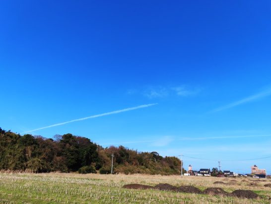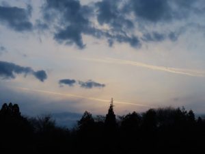 ・写真1は昼前散歩にて。快晴の空に飛行機雲。夕刻散歩の空にも飛行機雲(2)。 〔仕事&歩数〕大山滝句座開催。8,694歩。