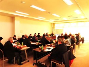 ・本日、第3日曜日にてホームの【大山滝句座】例会日。昨日に続いて朝から快晴。最高気温も14℃と春のような気分。南側が全面ガラス戸になっている会場(写真2)も、カーテン越しに太陽光線が温かく、途中でエアコンを止めたほど。