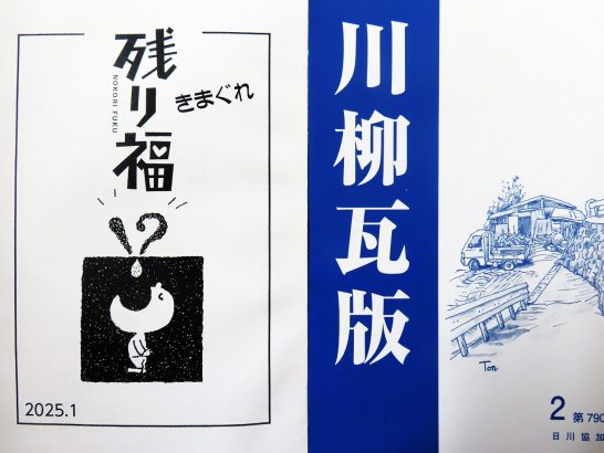 ・昨日の塔社句会場で信子さんから「川柳瓦版」2月号(第790号)を拝受(写真3右)。これには1月句会の発表あり。私は投句で参加していたので、確認すると下記の時事吟3句、珍しく「咲くやこの花賞」で2句抜けていた。