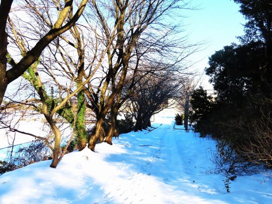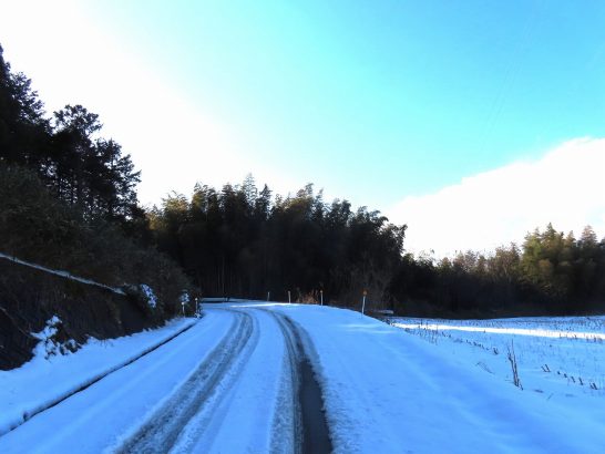 ・写真2は夕刻散歩にて。長靴で総合公園の遊歩道を歩いて途中の石段を下からパチリ。3は公園遊歩道の雪の状況。長靴の跡が残っているがまだ溶けてはいない。4は外周の農道にて。山影の場所はこの程度の雪。〔仕事&歩数〕句集鑑賞。5,218歩。