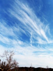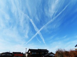 ・3時40分頃終了。4時過ぎに帰宅後、夕刻散歩のため総合公園へ。写真1は、倉吉の句会場北側にて、定点観測の小鴨川の清流。写真2、夕刻散歩の総合公園上空のダイナミックな雲。3、帰宅して駐車場からフト見ると飛行機雲がクロスして「X」のような「ペケ」のような。〔仕事&歩数〕倉吉川柳会出席。7,484歩。