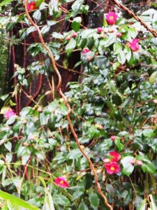 ・写真1、昨日のブログで「枝先で無数の雨粒がキラキラ光っていた」と写真を載せたが、詳細が見えなかったので、枝先をクローズアップ。写真2、総合公園遊歩道横で微笑んでいた椿。本日、西宮の【残り福】に出席予定だったが、家業あれこれ重なって残念ながら断念。6日の川柳塔句会には出席出来るよう大車輪! 〔仕事&歩数〕しんぶん赤旗・毎日山陰柳壇、それぞれ再チェック後メール&投函。大山滝互選表作成。5,766歩。
