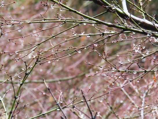・写真1、昨日のブログで「枝先で無数の雨粒がキラキラ光っていた」と写真を載せたが、詳細が見えなかったので、枝先をクローズアップ。写真2、総合公園遊歩道横で微笑んでいた椿。本日、西宮の【残り福】に出席予定だったが、家業あれこれ重なって残念ながら断念。6日の川柳塔句会には出席出来るよう大車輪! 〔仕事&歩数〕しんぶん赤旗・毎日山陰柳壇、それぞれ再チェック後メール&投函。大山滝互選表作成。5,766歩。
