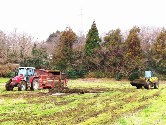 ・本日も好天。最高気温も15℃を超したようで、ようやく春の到来! 総合公園外周の農道を歩いていたら、いつも飼料用トウモロコシを植えている畑で、植え込みの準備をしておられた。赤いトラクターが牛糞をばらまいて、右のショベルカーが牛糞をいっぱいショベルに積み込んで待機(写真1)。よく見ると右の運転手は女性だった。ご夫婦で頑張っておられるのだろう。写真2は総合公園の遊歩道脇の鮮やかな椿。〔仕事&歩数〕しんぶん赤旗「読者の文芸」選考。塔社向け「せんりゅう飛行船」。7,358歩。