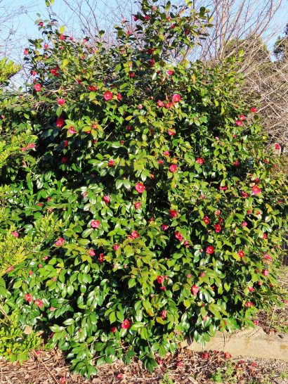 ・本日の予報で☔マークが出ていた通り、少し降ったが長くは降り続かず、午後からは春の陽気に戻った。写真1、総合公園近く畦道のタンポポ。2、総合公園の椿の中でいちばん花が多いと思う樹。〔仕事&歩数〕日川協「川柳文学賞」選考。7,589歩。
