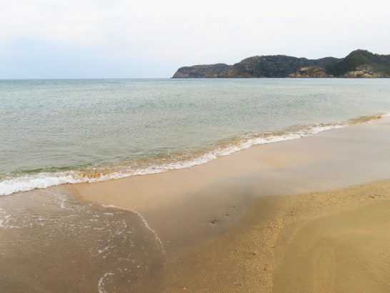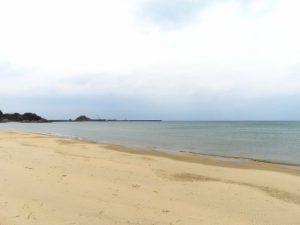 今日は、陸から海に向かって吹く風だったので、海岸に波は立たず、