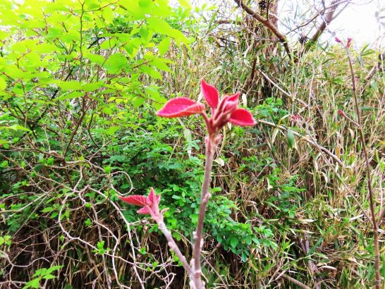 ・本日の最高気温の予報、鳥取市は27℃。米子市は28℃。だが我が琴浦町は25℃だった。琴浦町は鳥取と米子の間なのになぜ低いのか?やっぱり海が近いから? ともあれ、今日は最高気温25℃の夏日になった模様。昼前も夕刻散歩もジャンバーは脱いで軽い服装で快適。写真1,本日の大山(右奥の冠雪している峰)。2~3、名前の知らない雑木の綺麗な新芽。〔仕事&歩数〕川柳塔社より到着した「愛染帖」選考。7,883歩。