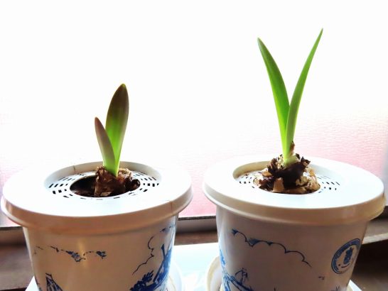 ・昨年の晩秋、寒くなってきたのでアマリリスの水遣りをストップして、葉を枯らしてから切り取って、球根を冬眠させた。2週間ほど前に暖かくなったので、水遣りを再開すると元気な葉芽が出てきてグイグイ。本日の状況は写真4の通り。右の長く伸びた方は、昨年購入して1度花咲いたもの。左は3年前?に購入して、もう3度ほど花を楽しんだので球根のパワーも弱ってきたのかもしれない。もう少し大きくなったら粒状の肥料を乗せてやろうと思っている。