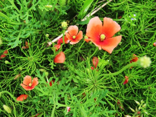 ・本日、午前中は好天だったが、予報通り夕刻からポツポツ降ってきた。が、夕刻散歩は滑り込みセーフ。写真1、夕刻散歩にて。総合公園エントランスの満開の芝桜、2、農道脇のポピー。〔仕事&歩数〕川柳塔社向け「愛染帖」など再チェック後送稿。塔社常任理事向け書類作成&発送。7,369歩。