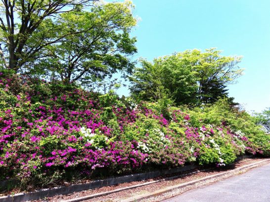 ・写真1、昼前散歩にて。農道の枝道。2、総合公園内、新緑の林。3、総合公園駐車場のヒラドツツジが咲きだした。〔仕事&歩数〕毎日新聞「中国文芸」選考。7,052歩。