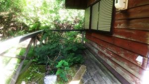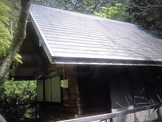 ・本日、快晴なので、店のドアに「すみませんが12時過ぎまで閉めさせて頂きます」と張り紙して、家内と二人で9時20分に出発。小屋まで約20分。去年の秋から半年ぶりの小屋の本体は、まだ大丈夫だがテラスがアウト。小屋の塗装もやりたい(写真1、2)。