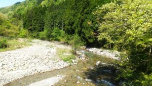 ・家内はあちこちの雑草退治していたが、私はもっぱらバーベキューコーナー周辺の雑草取り。何とか恰好ついたのでパチリ(3)。写真4は、小屋のすぐ下を流れている加勢蛇川(かせいちがわ)の清流。11時半ごろまで頑張って汗かいて帰宅。