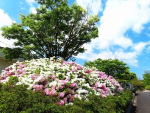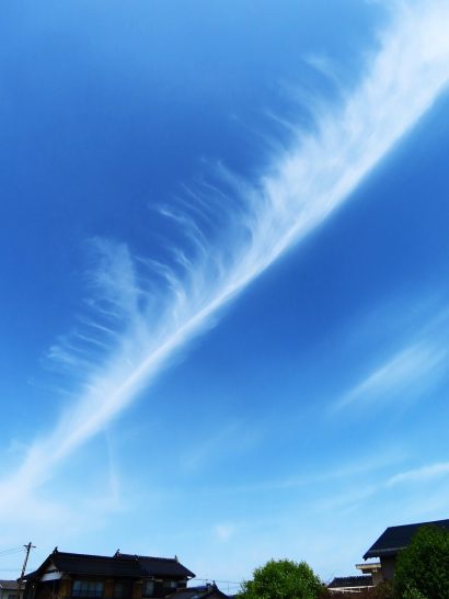 ・終了後真っ直ぐ帰宅。のち夕刻散歩で総合公園へ。午前中は快晴だったが、午後からは曇ってきた。写真1は朝の駐車場にて。飛行機雲が流れて面白い形。2は昼前散歩にて。総合公園のヒラドツツジ。〔仕事&歩数〕鹿野川柳会出席。6,865歩。