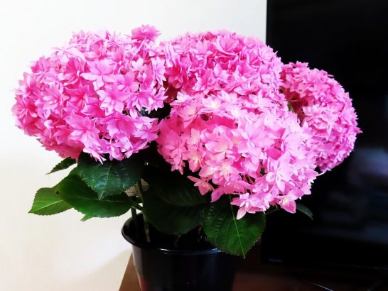 昨日、帰宅するとテレビの横に綺麗なピンク色のアジサイ(テマリピンク?)(写真)が飾られていた。家内に訊くと東京の息子夫婦から「母の日」のプレゼントとのこと。いつもサンキューベリマッチ! 母の日だからという訳でもないが、今日の昼前散歩と夕刻散歩では、道路脇とかで目についた花をパチリ(写真