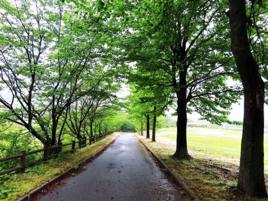 ・本日、朝からずっと細かい雨☂霧雨☂ 昼前散歩も夕刻散歩も傘をさして総合公園とか外周の農道を歩く。写真1、総合公園にて。霧雨の遊歩道。2、雨に濡れても柿の若葉が輝いていた。3、農道傍の定点観測の畑。20センチほど伸びた飼料用トウモロコシが雨を喜んでいた。4、公園エントランスのガザニア。昼前に撮ったのだが、雨を受けて花が閉じていた。〔仕事&歩数〕大山滝句座会報作製&発送。7,694歩。