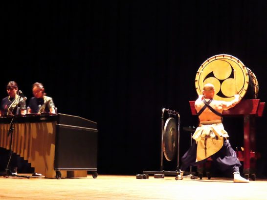 ・アトラクションは「和太鼓松村組」の演奏。最前列だったので迫力満点で腹に響いた(写真2~3)。大会の最初に連続出席等の表彰式あり。私は80歳以上の功労者ということで、恥ずかしながら他の4名と壇上で表彰状拝受。