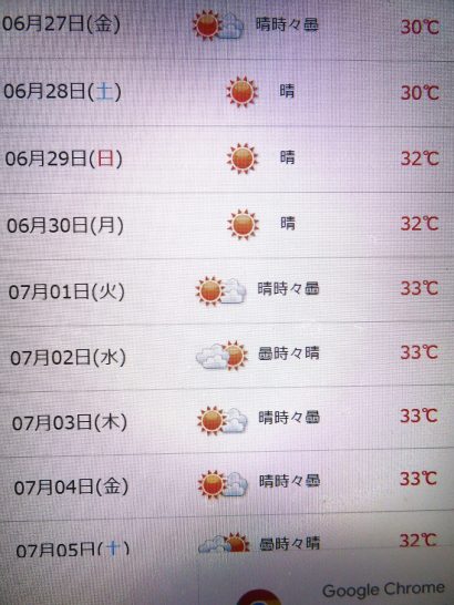 ・本日、朝から快晴。昼前散歩でも、上空には雲1つ無く。見渡すと、南の方の山の上に少し浮き雲があった程度(写真1)。若木はまだまだ新緑の風情(2)。明日の天候は?と2週間予報を見ると、ずっと☀マーク(3)。梅雨明け模様ではあるが、まだなのか? 〔仕事&歩数〕センマガ「川柳道」選考。7,569歩。