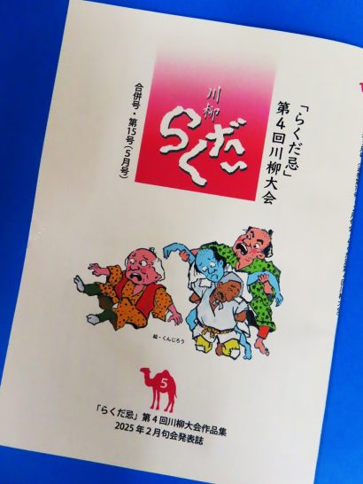 ・本日、「らくだ忌」第4回川柳大会の発表誌が到着(写真4)。私は投句で参加していたので、確認すると1句だけ「弔いのシューズ涙と鼻水と」。そう言えば、大会に参加した友人から「1句抜けていた」と報告して貰った記憶あり。それにしても、誌上大会等では、しばしば「セオリー通り2句入選」等と書いていたが、近ごろは1句が多くなった。もう少し粘り強く向かわなければ…、と思うのだが。今日も今日とて、課題1つにつきギリギリの2句だけ作ってホイホイと出してしまった。反省…(-_-;)。