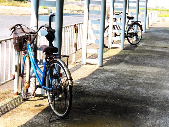 ・ときどきアップしている総合公園の自転車置き場に放置されている自転車。写真1の手前の青いのは、もう3年か4年以上前から放置されたまま。ところが、2週間ほど前から、向こうの方にまた1台、放置されている。その内に取りに来るだろうと思っていたが、今日の昼前散歩で見たら、まだ置かれたままだった。登録ナンバーなどを調べて警察に連絡すべきなのだろうが、盗撮先生の捜査で忙しいお巡りさんを煩わすのも如何なものか…。