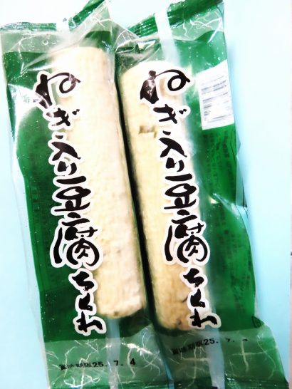 ・ところが、先日、久しぶりに「ねぎ入り豆腐ちくわ」(写真2)なるものを家内が買ってきて食べたところ、なかなか美味しかった。若い頃に「歯応えがない」と思った触感も、歯が悪くなった口には丁度良く、あっさりした味もベリーグーだった。その後ちょくちょく買っては、焼酎のアテにしている。スライスしてそのままでもいいが、辛子明太子を乗せたり、胡麻ラー油を塗ってもイケる。ただ欠点としては、焼酎が進み過ぎるということ。まあ、それは自己責任ではあるが…(-_-;)。